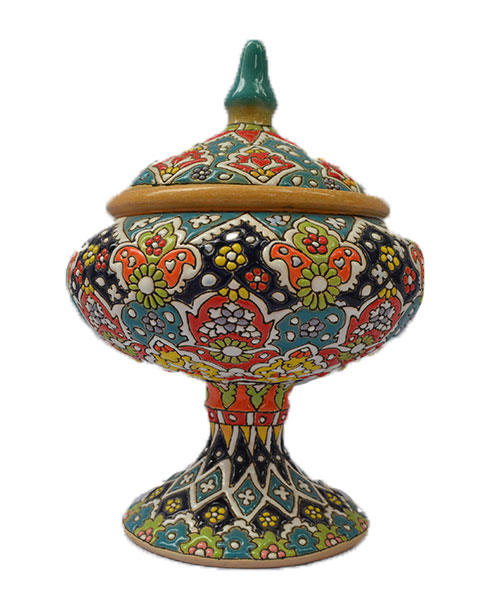 سه پایه پاشاهی سفالی مینا کاری شده |